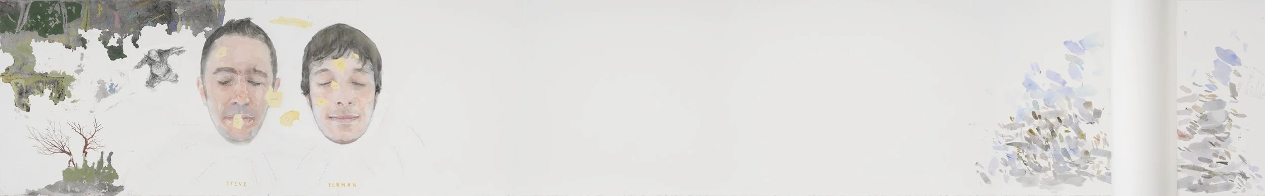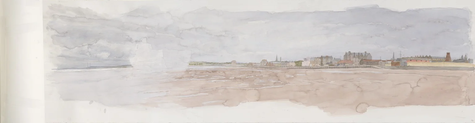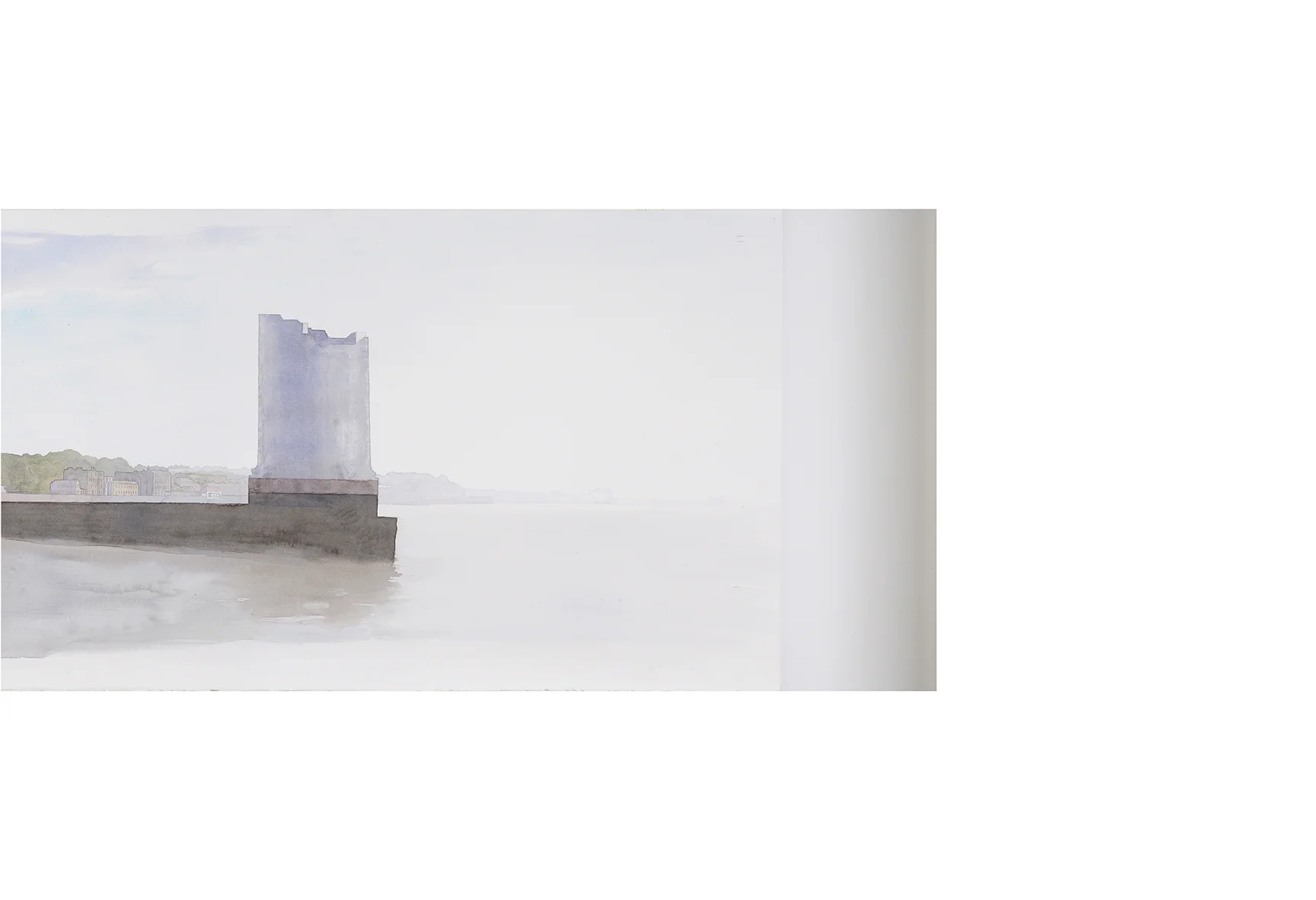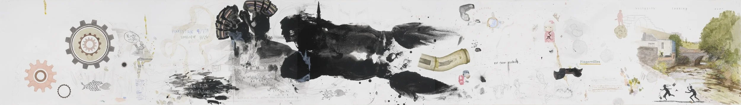 The work is a panorama of Edinburgh and in this installation creates a horizon line around the gallery walls. However, as well as evoking landscape traditions it is also a portrait of a city, and as such represents Creek’s experience of Edinburgh - his research, encounters and responses to place, its history and people.